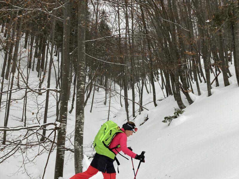 Für den Frühwinter recht gute Schneelage in der Freiner Gegend. Weitgehend windgeschützter Aufstieg zur Göllerhütte. Rast im Winterraum. Bei kammgeeignetem Wetter bietet sich der Weiterweg zum Kleinen Göller an.